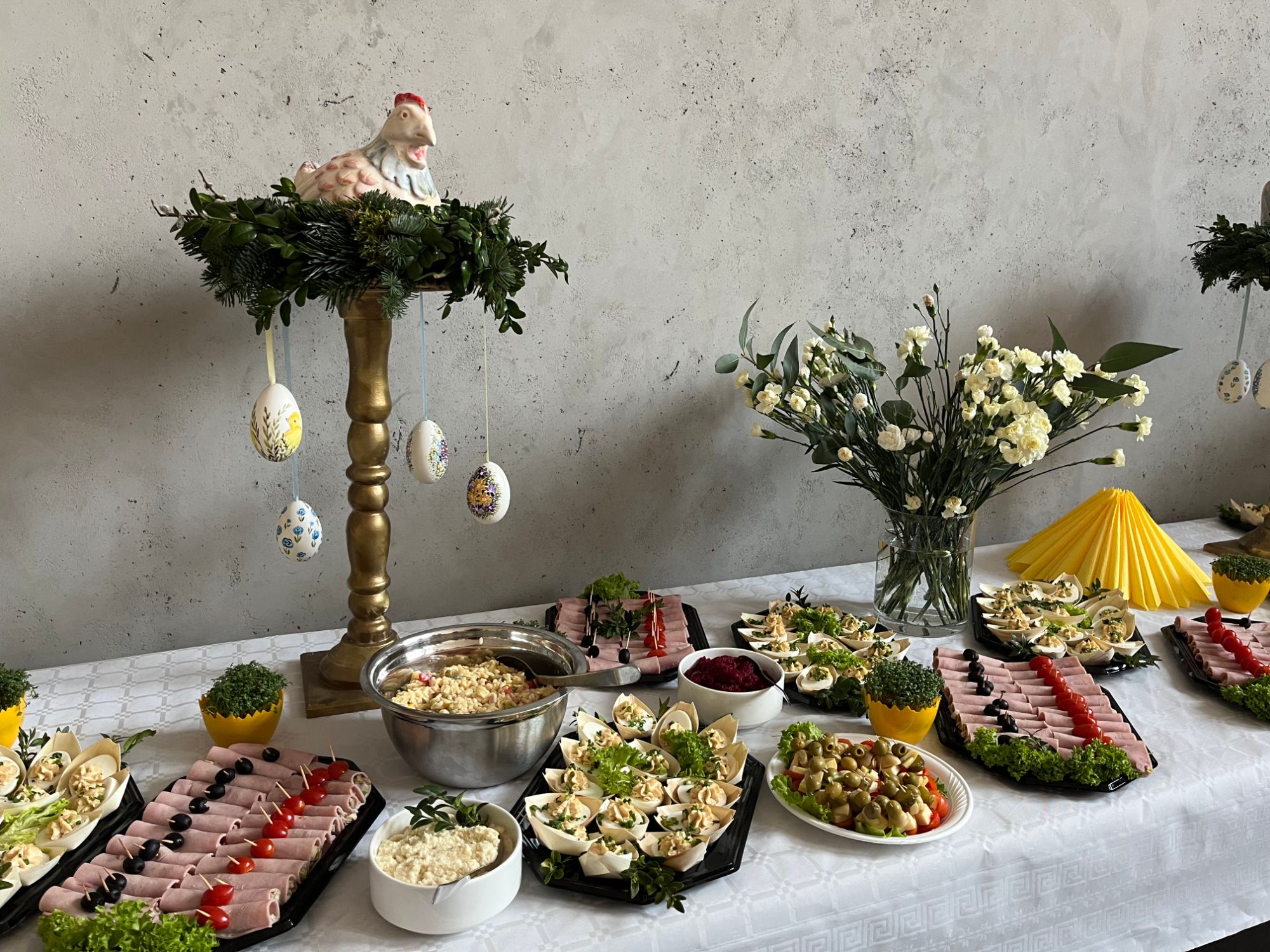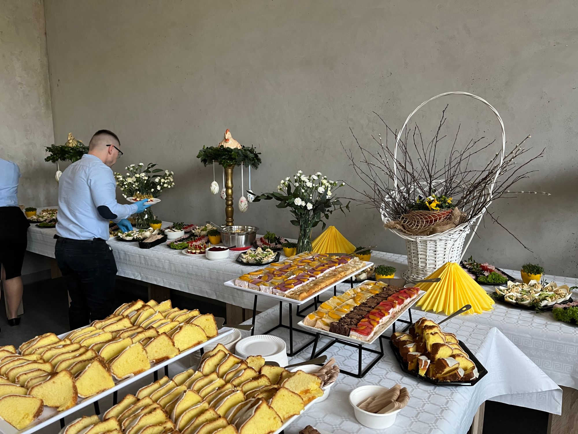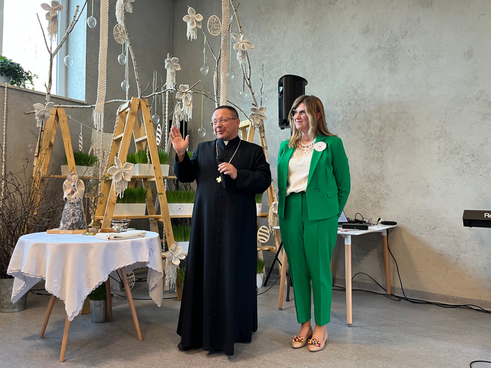 Spotkanie rozpoczęło się od oficjalnego powitana przez Prezes Towarzystwa Przyjaciół Niepełnosprawnych Panią Agnieszkę Niedźwiedzką. Był też czas na wypowiedzi, podziękowania i życzenia naszych Gości. Następnie odmówiliśmy wspólnie modlitwę i Kardynał Grzegorz Ryś poświęcił budynek Wyjątkowego Domu. Później swój program artystyczny zaprezentowała Grupa Teatralna „Kameleon” śpiewając piosenkę, która towarzyszyła nam podczas akcji „Podaj cegłę”, czyli utwór „Pieśń o cegle”. To był wspaniały występ, który zachęcił Gości do wspólnego śpiewania. Kolejnym punktem programu było zwiedzanie mieszkań Wyjątkowego Domu. Każdy z Gości mógł wejść do wnętrza pokoju czy przestrzeni wspólnej. Z zapartym tchem obserwowaliśmy reakcje i komentarze uczestników, ponieważ włożyliśmy wiele serca i wysiłku, aby każde mieszkanie było pięknie urządzone, tak, żeby każdy mieszkaniec poczuł się tutaj jak w domu. Dziękujemy za wszystkie ciepłe słowa i miłe gesty oraz za Waszą obecność! Na koniec wszyscy udaliśmy się na Wielkanocny poczęstunek, który przygotował Zakład Aktywności Zawodowej „Zdrowa Kuchnia” TPN. Oczywiście na stole nie zabrakło tradycyjnych świątecznych potraw takich jak: żurek, biała kiełbasa, jajka czy babka.